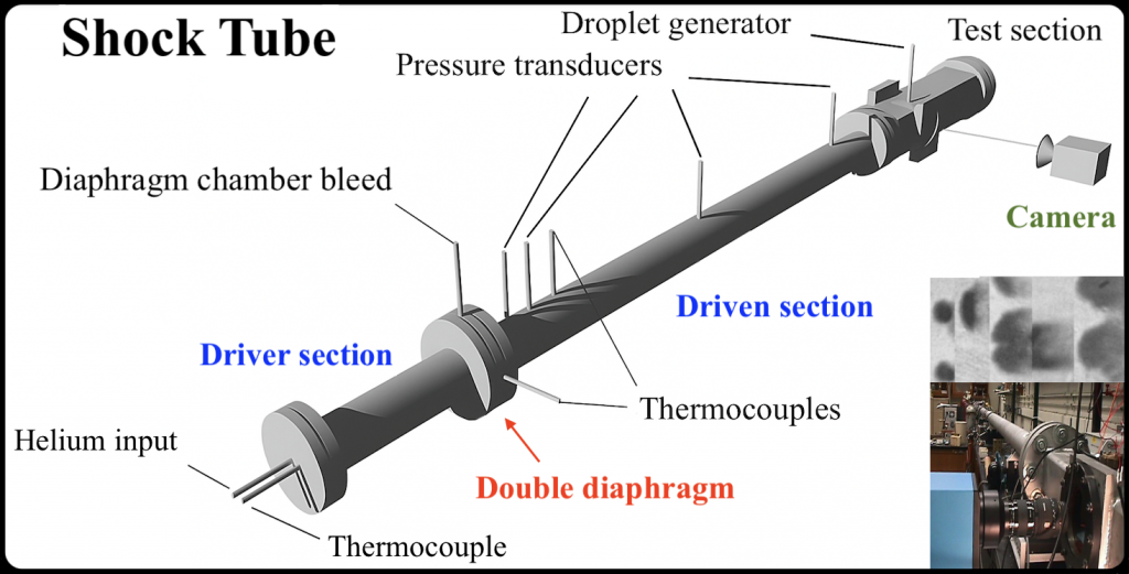 Droplets under Shock Impact, Multiphase Flow, and Dust Explosions – Schlieren Visualization