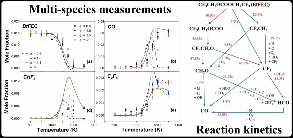 M. Khan Ghauri, P. Diévart, C. Grégoire, K. Kanayama, Y. Almarzooq, S. Takahashi, T. Tezuka, H. Nakamura, L. Catoire, K. Maruta, E.L. Petersen, O. Mathieu. Bis(2,2,2-trifluoroethyl) Carbonate as a Fire Suppressant Candidate for Lithium-Ion Batteries. Energy and Fuels 39 (2025) 4893-4908.