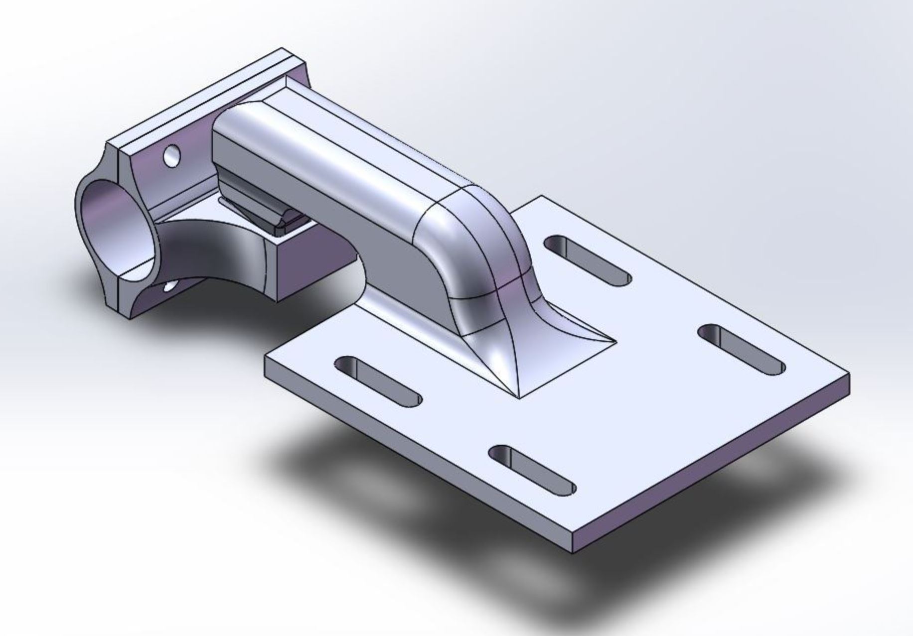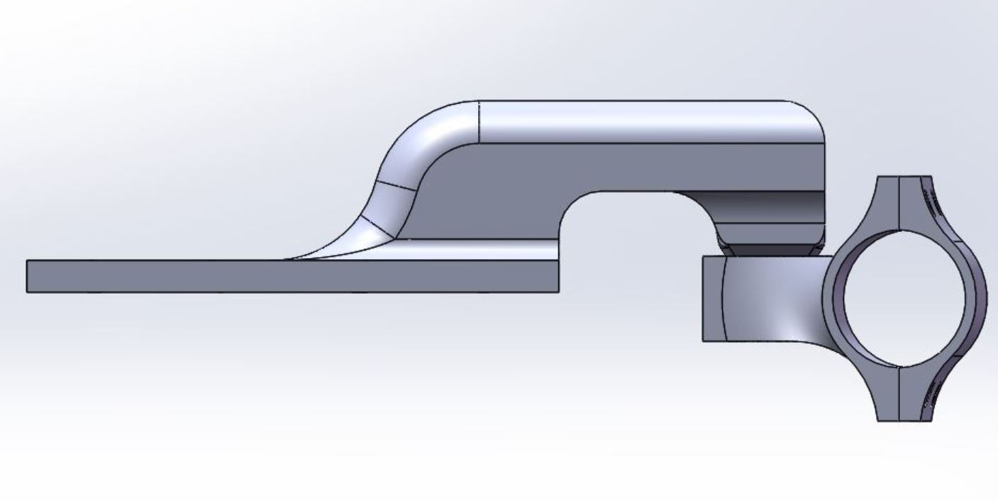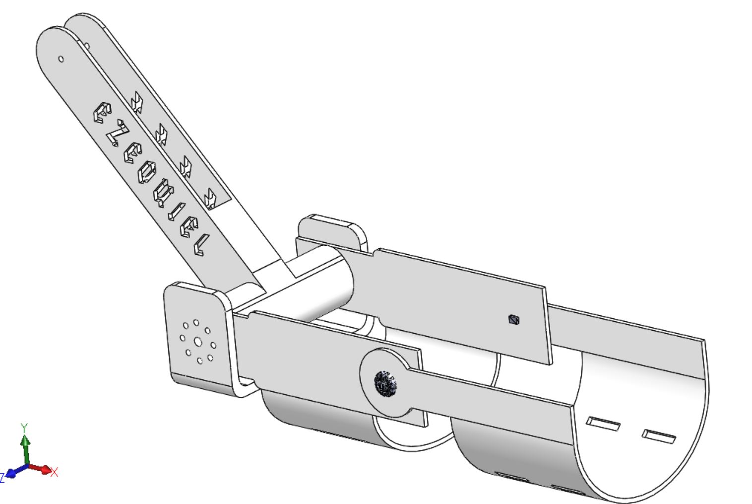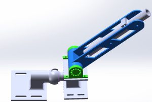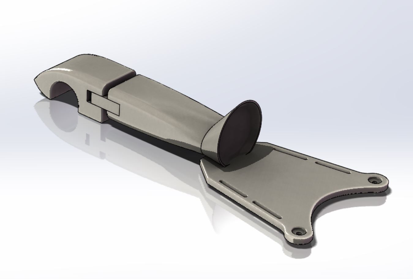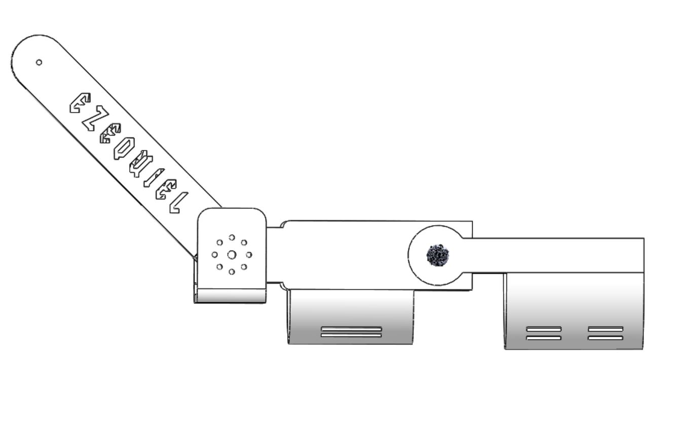 - Drumstick Holder –This component is designed to hold a standard drumstick based on the ones in the GRiP lab. It is held via a hook and spring, the spring requires testing based on recipient need and the cutout designs on either side can be altered to the recipient’s liking. The drumstick is attached at the tip side by a #8 screw within a small plastic cylinder to allow for rotation. This component is attached to the DHConnecter via [4 #8 screws and 1 1/4″ screw] on either side and can be rotated via the screws to 0 degrees, 45 degrees, or 90 degrees. The rotation allows for different drumming styles. The length of this component can be adjusted based on the length of the recipients arm.