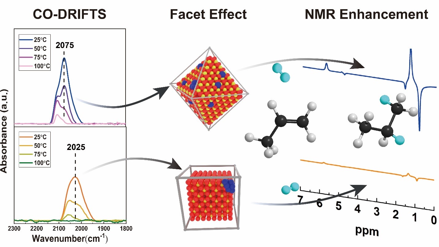 The ultra-low loading Pt catalysts supported on CeO2 shapes have been utilized in the hydrogenation of propene to synthesize spin-labeled propane for parahydrogen-induced polarization (PHIP) nuclear magnetic resonance (NMR). The pair-wise addition of hydrogen to an unsaturated molecule, where both added hydrogen atoms originate from the same parahydrogen molecule (with antiparallel spins), has the potential to increase NMR, and thus also magnetic resonance imaging (MRI), signals by four orders of magnitude. We have shown that the electron-deficient Pt species on the (111) surfaces of CeO2 octahedra result in significantly higher pair-wise electivity, and thus also NMR signal enhancement, compared with the electron-poor Pt on the (100) surfaces of CeO2 cubes.