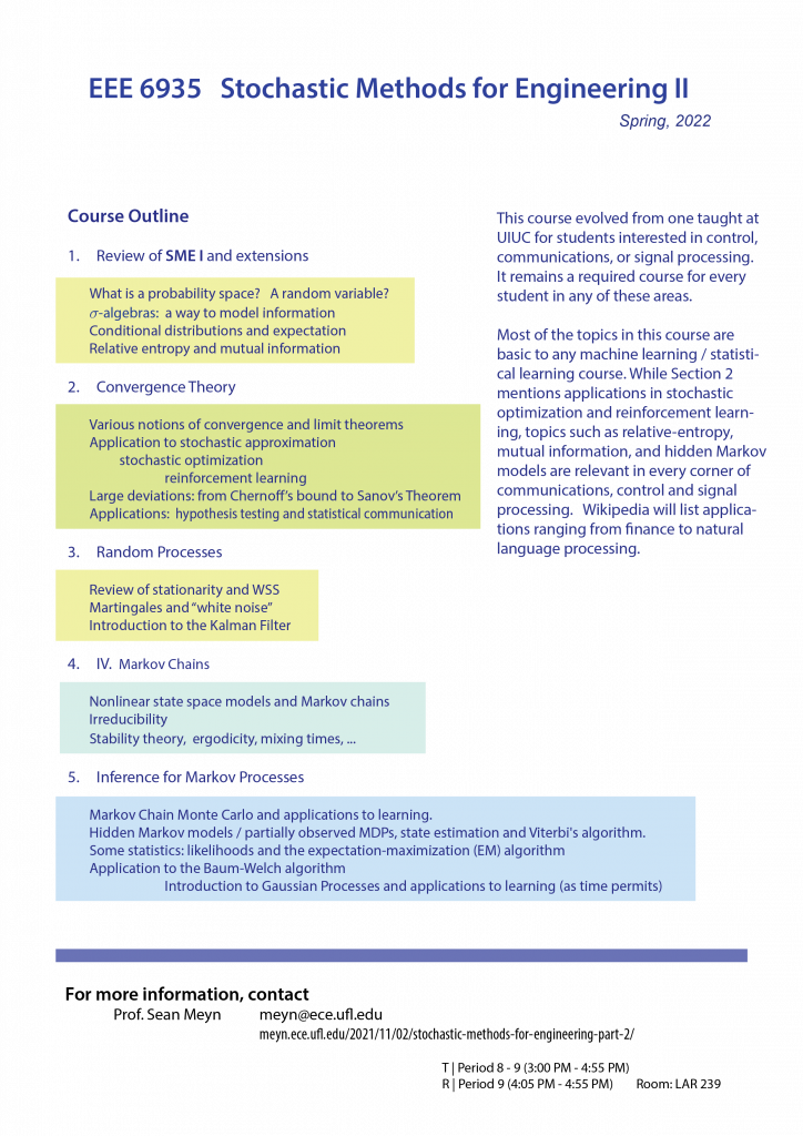 - The main text is Bruce Hajek’s Random Processes for Engineers. I augment with lecture notes I have developed over the past decades.