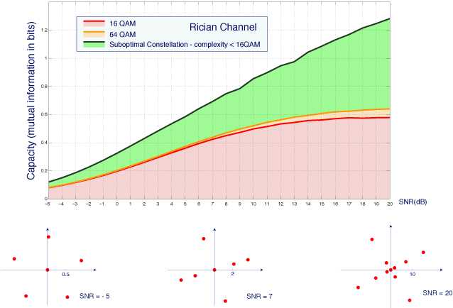Although supported on just 10 points, it achieves double the capacity of 16 or 64 point QAM