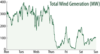 Wind generation in New Zealand over a typical week in August, 2009 |