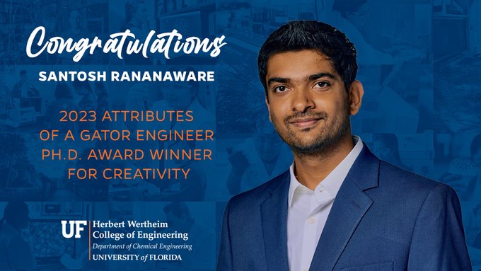 Santosh Rananaware, PhD candidate, won the award at the Herbert Wertheim College of Engineering