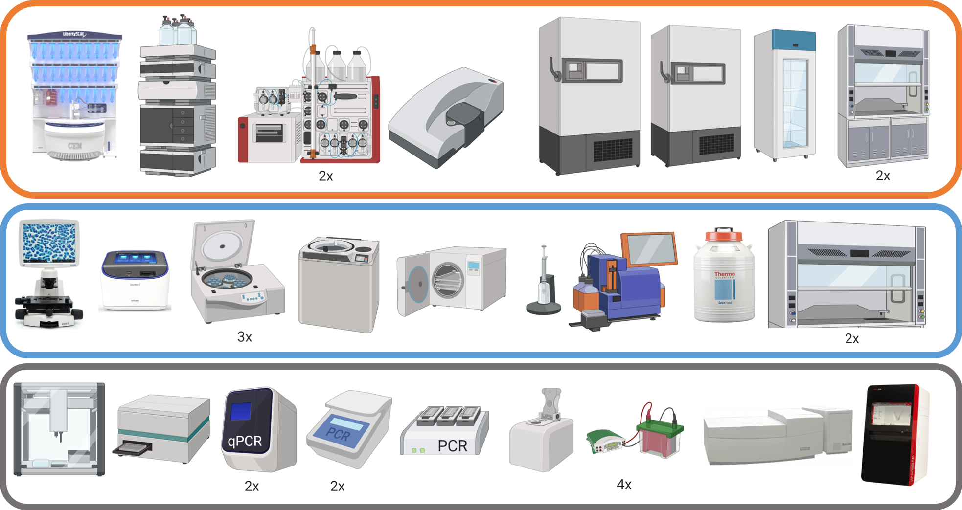 - Two qPCR (Agilent and ViiA 7 systems) three PCR machines (Thermo 3-block, Eppendorf, and BioRad), an iWestern workflow system (Thermo), and several gel electrophoresis systems. We also own two gel imagers- a phosphorimager/chemiluminescent/fluorescence (GE Typhoon) and a RGB gel imager (Analytik Jena, GelStudio Touch Plus). A variety of liquid handling and small molecular biology equipment are also in the lab.