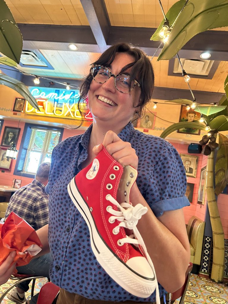 We had fun celebrating all the lab successes of the semester and bidding farewell to Schmidt Lab postdoc, Dr. Eleana Manousiouthakis. Always a good time at Chuy’s! Wonderful team and great roast presented by Blanca!
