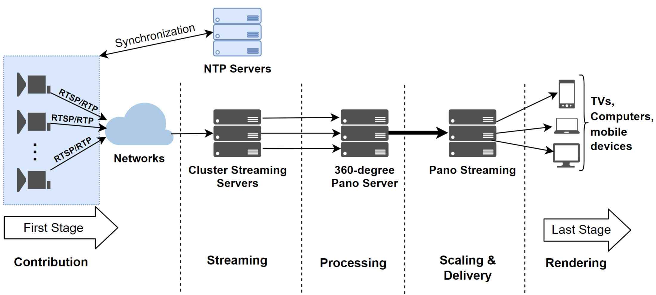 Our lab is pioneering a broadcasting system tailored for immersive live events. Our innovative multi-camera approach promises a richer viewing experience, empowering audiences to select their preferred vantage points, thus promoting immersion. By strategically deploying Embedded Cameras throughout the event space, we achieve comprehensive coverage without causing any disruptions to the participants or the ongoing event. These cameras transmit real-time footage to a dedicated server designed to manage high-resolution streams seamlessly.