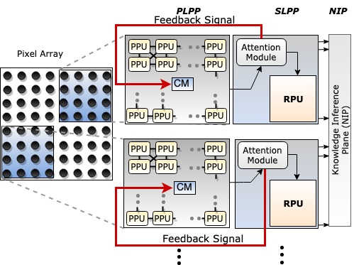 - The processors in each layer are reconfigurable to different applications in ASIC. This allows flexibility in the design and enables us to apply the sensor for different applications.