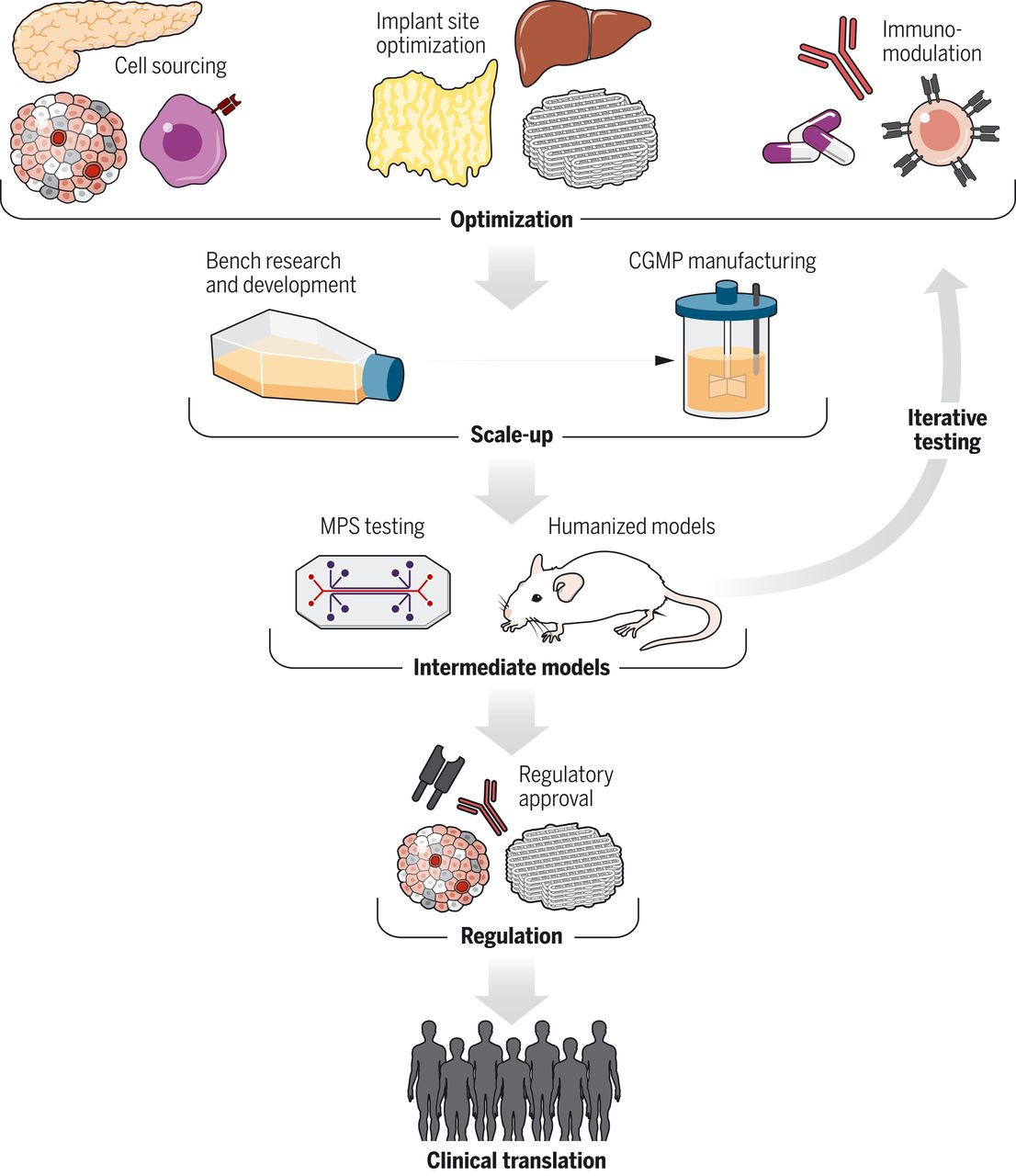 The paper highlights advance in stem cell biology and graft site design, which offer innovative sources of cellular material and improved engraftment, as well as cutting-edge approaches for preventing allograft rejection and recurrent autoimmunity.