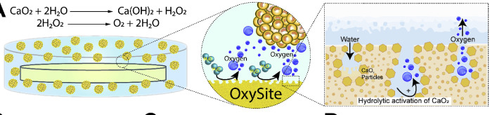 While accelerating vascularization of the implant is highly desirable, there is always a hypoxic period between implantation and the development of a fully functional, intra-device vascular network. Limiting or eliminating this hypoxic period would dramatically reduce hypoxia-induced cell death and permit more clinically translatable devices, particularly for islets, which not only express high oxygen demand but are also sensitive to hypoxic stress. As such, we developed an in situ oxygen-generating biomaterial to provide supplemental oxygen immediately upon implantation, called OxySite. Through manipulation of the material properties, we were able to develop a means to provide controlled and temporal oxygen to the microenvironment for extended time periods. We have published on the potential of this material to support islet viability in vitro and in vivo