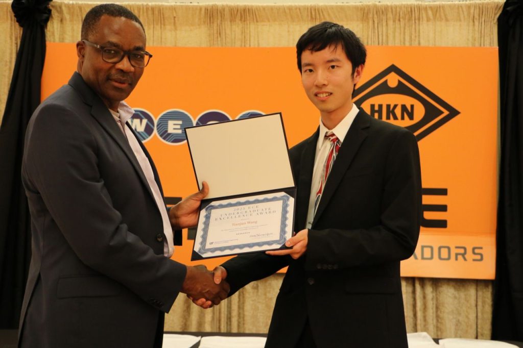 Tianjun Wang receives the ECE Undergraduate Research Excellence Award