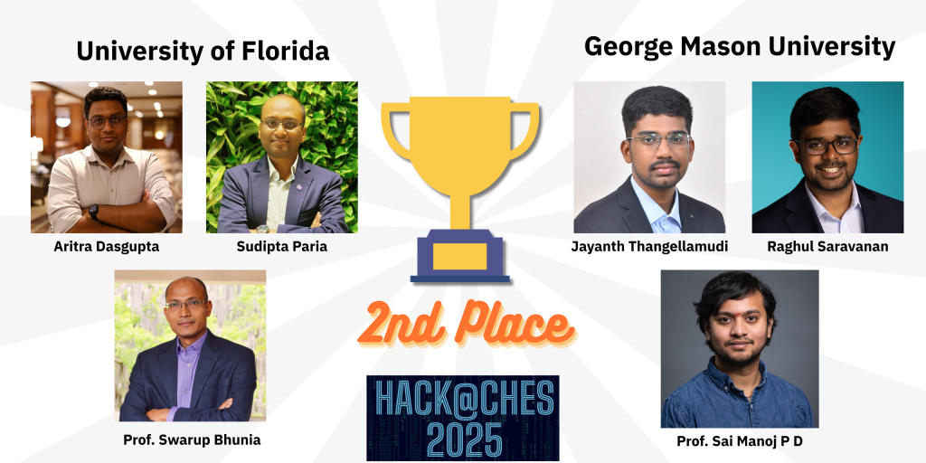 September 30, 2025A student team representing the Warren B. Nelms Institute won 2nd Place in the HACK@CHES 2025 Competition. Team CapitalGators was comprised of Nelms Institute PhD students Sudipta Paria and Aritra Dasgupta, advised by Dr. Swarup Bhunia, and George Mason University PhD students Raghul Saravanan and Jayanth Thangellamudi, advised by Dr. Sai Manoj P D. “We’re absolutely thrilled to be […]